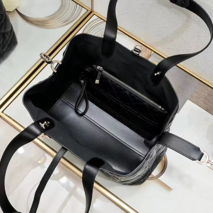 Un sac cabas compact en cuir de vache avec une pochette zippée amovible et une fermeture à fermoir – conçu pour une élégance au quotidien.
