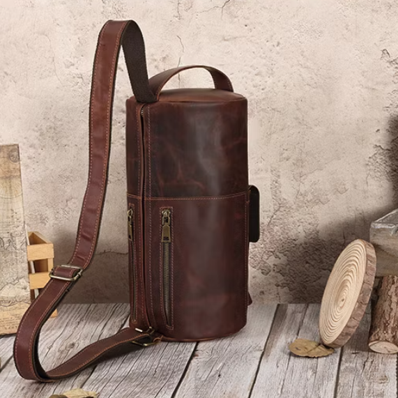 Transport quotidien avec un sac poitrine élégant en forme de cylindre, fabriqué en cuir de vachette de qualité supérieure pour un style intemporel et robuste. Conçu pour la polyvalence, ce sac multi-usage peut être porté en bandoulière, à l'épaule ou à la main, s'adaptant facilement à vos besoins. Son design compact mais spacieux assure un accès facile à vos essentiels, tandis que les fermetures éclair robustes et la sangle ajustable offrent à la fois sécurité et confort. Que vous fassiez la navette, voyagiez ou exploriez la ville, ce sac poitrine en cuir est le parfait mélange de style, fonctionnalité et durabilité.